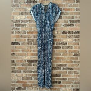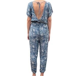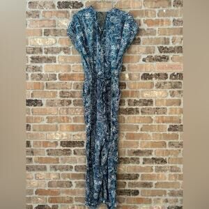 Free people Ada jumpsuit romper blue paisley v neck open back sz S