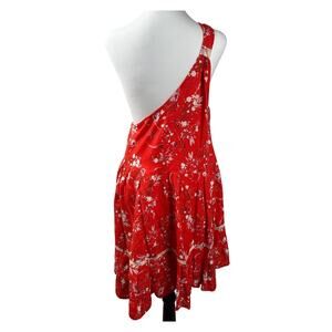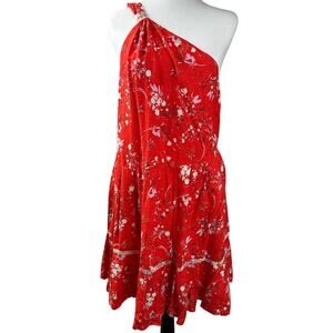Free people All Mine Linen Mini Dress Red Floral One Shoulder Boho womens Small