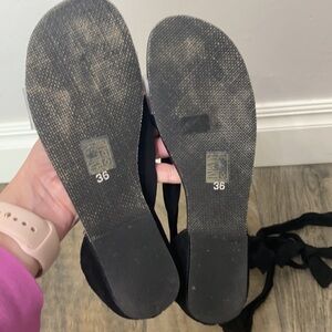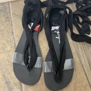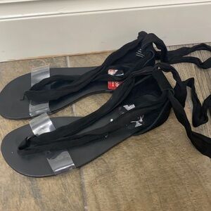 Free people Barcelona wrap sandals size 36. Black. Excellent condition.Clear piece on front.Wraps around and ties at ankle.