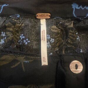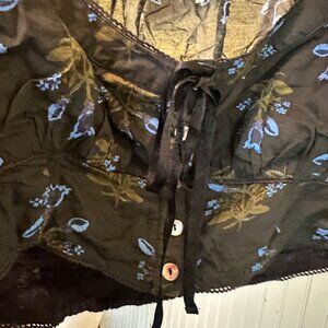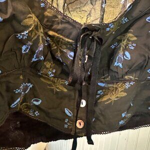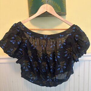 Free people Black Floral Puff Sleeve Crop Top With Buttons & Tie Detail XL