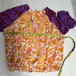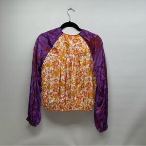 Free people Bohemian Floral Blouse with Purple Sleeves size M