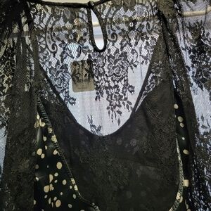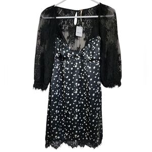 Free people Chic Black Lace Dress with Polka Dots NWT