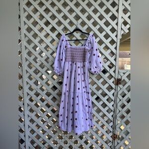 The Fit: Fitted smocked bust with a flowy skirt and billowing, puffy sleeves