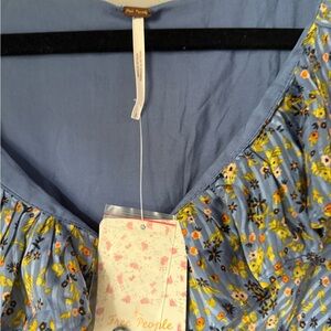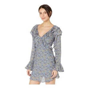 Free people Embrace elegance with this stunning floral blue ruffle dress. Perfect for any occasion, it features delicate ruffles and a flattering fit.