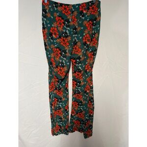 Stylish pants with a vibrant floral print. Features a mix of red and green colors. Rise 11.5” inseam 31”