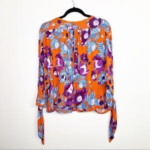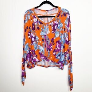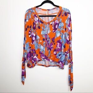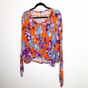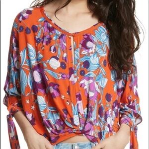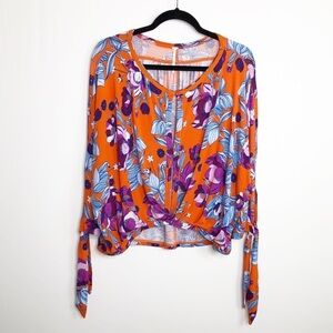 Free people Keeping On, floral long sleeve blouse, that ties at the wrist with open button closure at the front good condition gently preowned just a small spot at the him on the left side as shown in one image.
