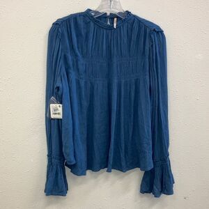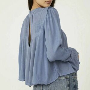 Free people Kelsey Peasant Blouse Blue Metal Bell sleeves Cottagecore Fairycore