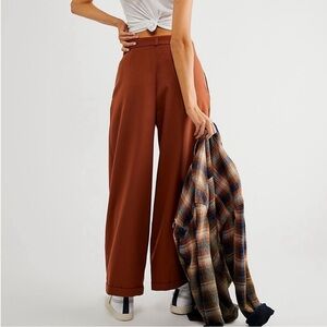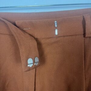 A contemporary take on the classic trouser silhouette, this style is featured in a low-rise, slouchy silhouette with front pleated detailing and wide-leg design.