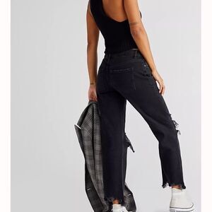 Free people Maggie Mid Rise Straight Jeans distressed in black size 24