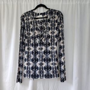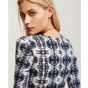 Free people Mai Tai slinky Top stretch long sleeve white blue size M NWT cut out
