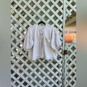 Features: Soft fabrication, round neckline, button-front closures, chest-pocket detailing, drop-shoulder sleeves with ribbed hems