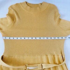 Free people French Girl Light Metallic Gold Yellow Belted Mock Neck Long Sleeves Sweater Dress