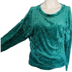 Free people Milan Sea crushed velvet emerald Green baggy sleeve drape top