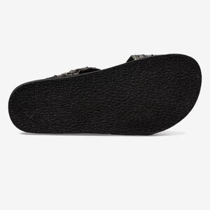 Features: Slip-on style, backless design, round open toe, criss-cross cotton straps, molded cork footbed, mixed-bead embellishment, rubber outsole