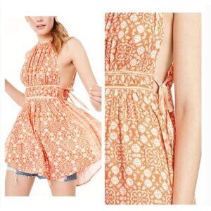 Free people NWT Mid summer floral prints days tunic dress in orange , Size M