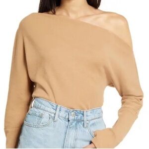 Free people NWT women’s tan long sleeve off the shoulder Fuji thermal size M