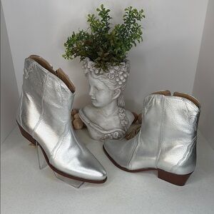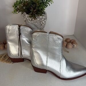 Free people New Frontier Silver Leather Western Ankle Booties Sz Euro 38.5/8.5