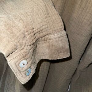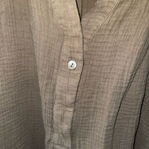 This relaxed blouse from Free People features a mandarin collar and long sleeves, offering a comfortable yet stylish fit. The green hue adds a touch of nature-inspired elegance, making it a versatile addition to any wardrobe. Its buttoned front and soft fabric ensure both ease and sophistication for everyday wear.