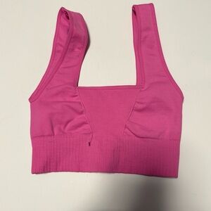 Comfortable and stylish pink sports bra, perfect for workouts and everyday wear.