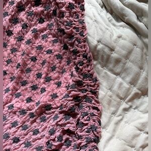 Chic pink skirt with black textured accents. Really cute scrunch side.