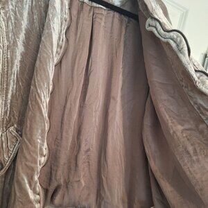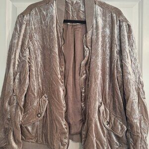 Free people Ruched crushed velvet bomber jacket pink cream size L/G