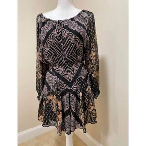 So pretty and printed, this puff-sleeve mini dress features a billowy top and fit-and-flare skirt with exaggerated open back for added shape.
