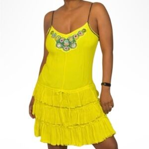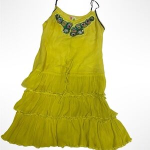 Free people Silk Vibrant Yellow Sundress with Floral embroidery