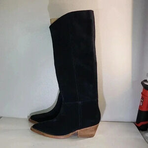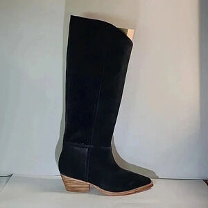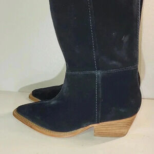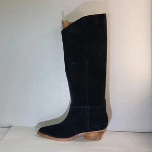 exposed stitching highlights the slightly slouchy shaft of this chic
