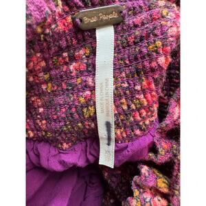 This charming Free People cotton mini dress combines a playful and feminine design. Featuring 3/4-length balloon sleeves with ruched wrists and a smocked, ruffled bodice, this dress is as sweet as it is stylish. The A-line silhouette offers a flattering fit, while the adjustable tie detail at the neck allows you to tie it in the front or back for versatility. The tie-back closure, cinched sleeves, and frayed trim add a touch of character, and the dress includes functional pockets for extra convenience.
