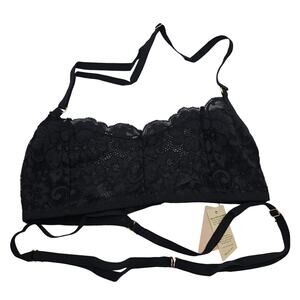 Free People We Are HAH Womans size S Don't Cross Me Halter Bralette Noir Black halter neckline with adjustable strap crisscross adjustable waist strap wraps around waist with hook closure lined lace front no padding NEW with tags