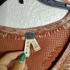 Free people We The Free Cutout Floral Knit Scoop neck Rust Space Dye Top sz S