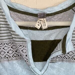 Free people striped oversized muscle style tank. Blue and green with lace detail and v neck. High low hem. Size xs but could easily fit a small/medium. Measurements taken while flat.
