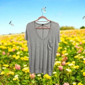 Elevate your casual wardrobe with this stylish gray V-neck top. Perfect for everyday wear, it offers comfort and versatility. We the Free" gray t-shirt w/pocket size XS oversized pre-owned good condition