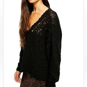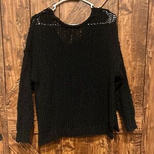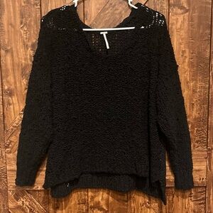 Free people Womens oversized black Sundayshore cotton open stitch sweater XS