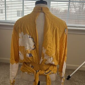 Brighten your wardrobe with this stunning yellow floral top. Perfect for any occasion.