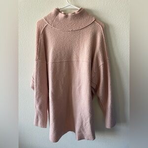 Free people afterglow nylon and wool mockneck collared sweater in pink