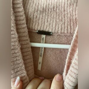 Add a pop of color to your winter wardrobe with this Free People Afterglow nylon and wool mockneck collared sweater in a beautiful shade of pink. This used sweater is in excellent condition and is perfect for layering during the colder months. The size Small fits true to size and is designed for a relaxed and comfortable fit. The mockneck collar adds a touch of sophistication to this cozy sweater, making it versatile for both casual and dressed-up looks. Whether you pair it with jeans for a laid-back vibe or dress it up with a skirt and boots, this sweater is sure to become a staple in your closet. Stay warm and stylish with this trendy Free People sweater!
