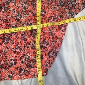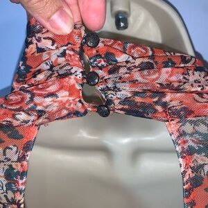 Free people all dolled up orange Floral grey Women's sheer lined blouse large