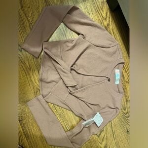 Free people beach long sleeve stretchy dusty nude open front crop top small new