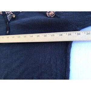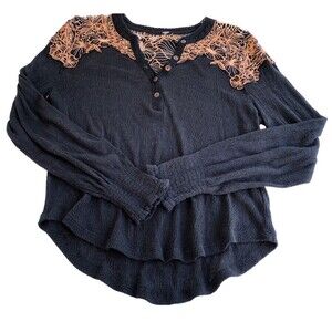 This is a black gauze thermal long sleeve top from Free People, size S. It features a Henley neckline and button-embroidered accents. The pullover closure and thermal features make it a comfortable and warm choice for cooler weather. Please refer to the photos for measurements as the size tag has been removed.