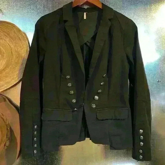 Free people blaser, size xs, navy blues with silver buttons, front pockets