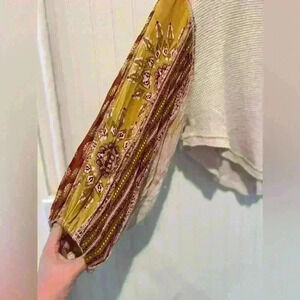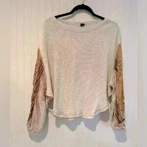 Free people boho oversized thermal long sleeve top sz. XS. Patchwork peasant