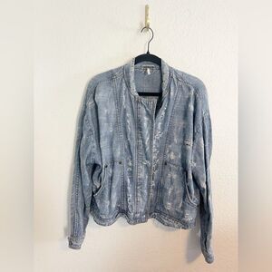 Free people bomber jacket Tattered Tennis Distressed jean jacket size Medium
