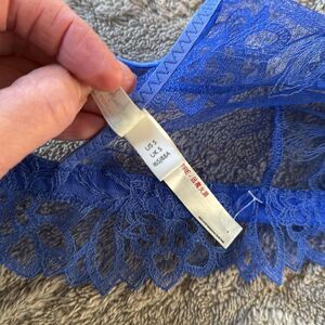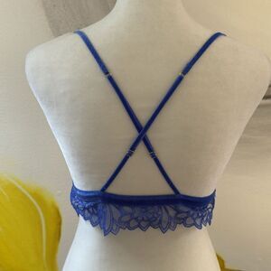 Free people bralette. Size Small. Blue lace with velvet straps. Like new.