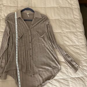 Never worn Free People taupe button down shirt. Semi sheer. Perfect for beach coverup