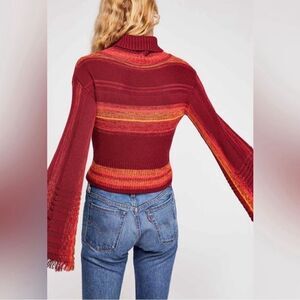 Free people close to me red turtleneck bell sleeve fringe sweater