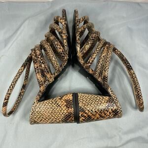 So striking and strappy, these stunning heels are featured in a slip-on style and buttery soft leather with chunky round straps, a square-toe footbed, and bold pyramid-style block heel.