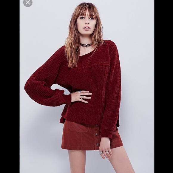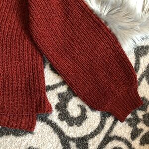 Free people cotton chunky knit crewneck bishop sleeve sweater in Rust. Size M