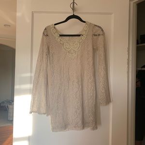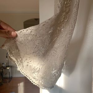 Worn once boho dress. Lace crochet. Bell sleeves open back. No damage. Super cute for festival season