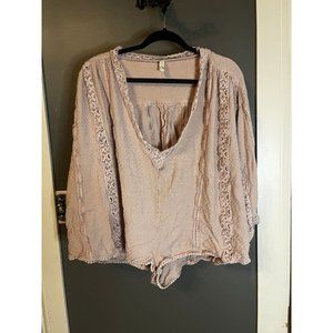 Free people crocheted romper blush pink size medium. Very good used condition, missing belt. Please feel free to look at my other listings for bundles.